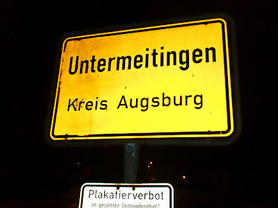 Auf der Straße wollten wir nicht fahren, so fragten wir einen jungen Kerl nach einem Fahrradweg nach Untermeitingen. Dieser erklärte uns den Weg, den er selber früher immer gefahren ist. Nur 10 Minuten hat er dafür gebraucht. Erleichtert setzten wir unsere Fahrt fort. Doch leider - wir wunderten uns, wie schnell der Junge gewesen sein musste, wahrscheinlich war er ein Rennradfahrer - waren wir nicht einmal nach einer halben Stunde angekommen. Doch nach dieser halben Stunde um 23 Uhr erblickten wir vor uns das gelbe Ortsschild: "Untermeitingen".
