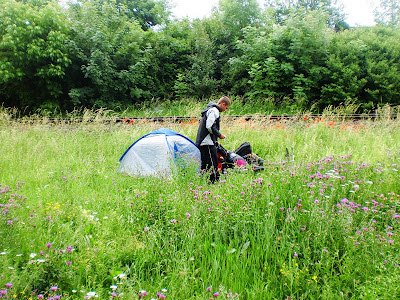 Doch auch hier wurden wir stündlich gestört. Wir platzierten unser Zelt nur 5 Meter weit entfernt von Gleisen, die wir nachts nicht gesehen haben. So wurde unser Zelt ständig seitlich weggeweht. Aber wir schliefen ein...