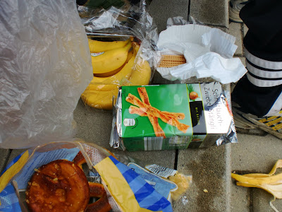 Am nächsten Morgen, es war ca. 7 Uhr, verließen wir unser Zelt. Draußen standen Schaulustige und beobachteten uns von der Bushaltestelle aus, die auch nur 20 Meter weiter weg war. Schnell packten wir unsere Sachen ein und fuhren irgendwo frühstücken. Die letzte Nacht ist überstanden.